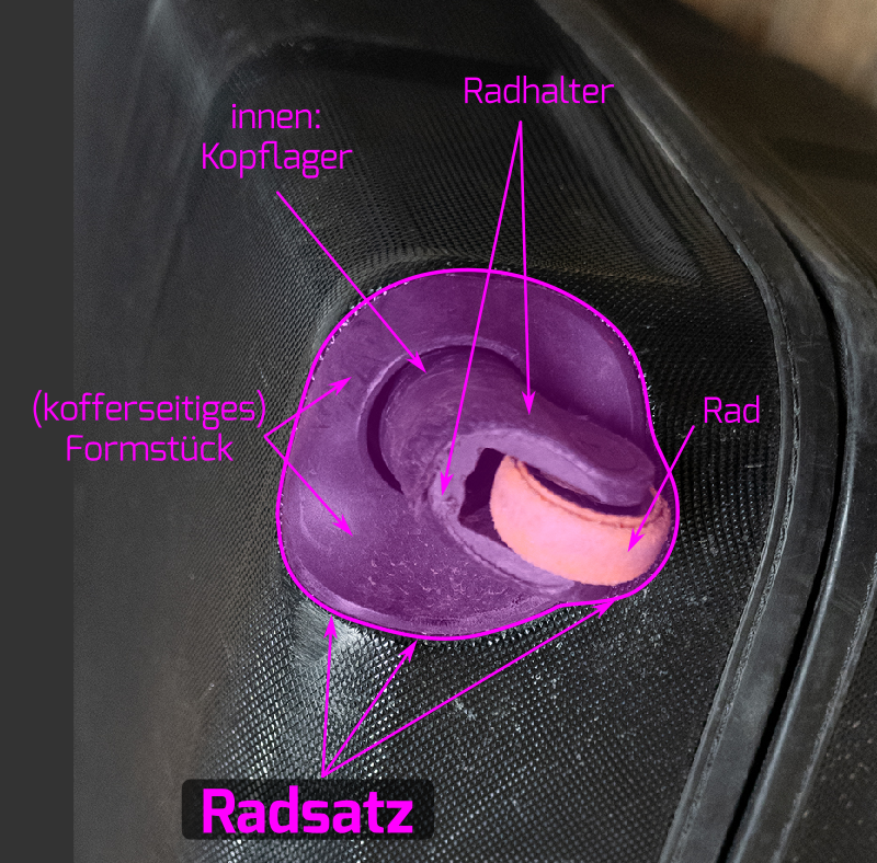 Wenn Sie uns schreiben ist es nützlich, wenn wir uns über Begriffe einig sind. Leider gibt es keine einheitliche Terminologie für Kofferteile. Hier finden Sie die Begriffe, die wir verwenden.